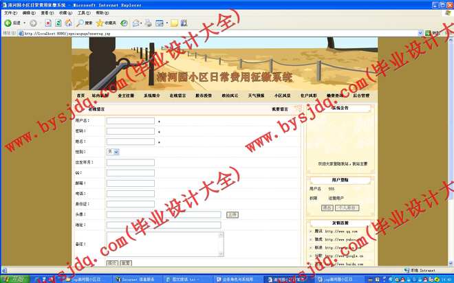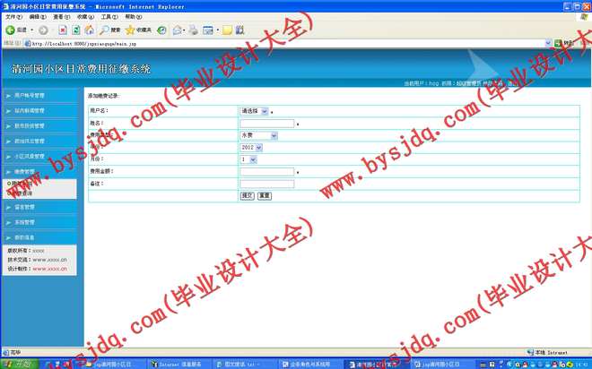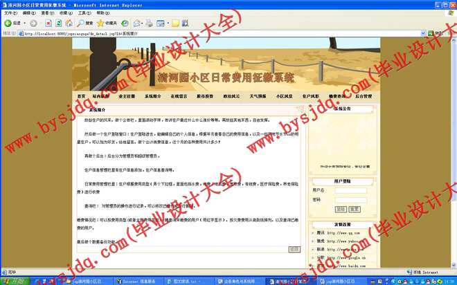 清河园小区日常费用征缴系统是典型的在线缴费平台,其开发基于B/S模式的在线缴费的实现,采用的是JSP+SQL 2000模式,是凌架于互联网系统上的一个缴费平台,是地面缴费系统的一种延伸和互补。当下在中国,不同程序实现在线缴费的厂商约占78%左右,剩下的那22%左右的厂商,都在努力创造着做在线缴费的地面物质准备。錾于此,实现在线缴费,已经成为未来商场战争中占有优势地位的必不可少的工具了。