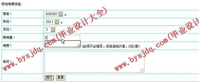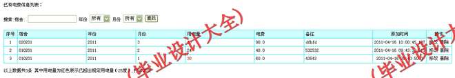 电费查询:查询房间的电费情况;(如房间号、电费、用电量等)