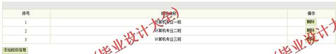 班级信息管理模块:管理员通过该模块管理班级信息,包括班级信息添加、查询、删除等操作。