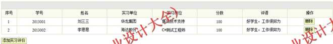 实习信息管理模块:管理员通过该模块管理学生实习信息,包括学生实习信息添加、查询、删除等操作。
