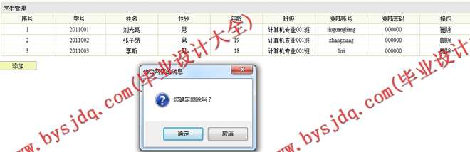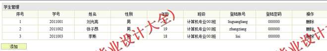 (3)学生信息管理模块:在该模块中定义了对学生信息的管理,其功能包括学生信息录入、查询、删除等操作。