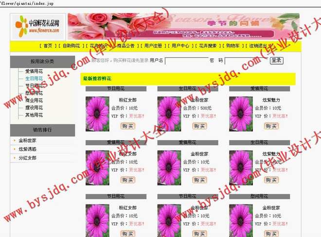 前台部分,客户可以申请加入会员,进行花品的选购,自助订花,提交订单等操作。