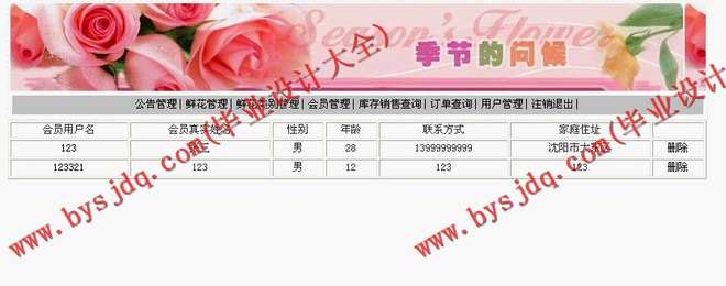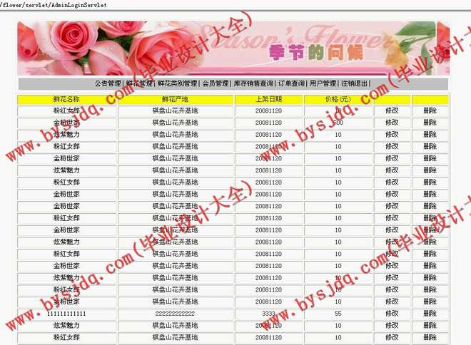 信息发布主要是鲜花商品信息的发布,有按不同方式的商品分类,特价商品信息发布,新品的展示;以及花店公告的管理,包括添加,更新,删除等操作。