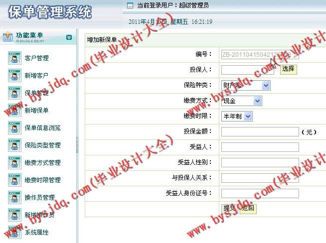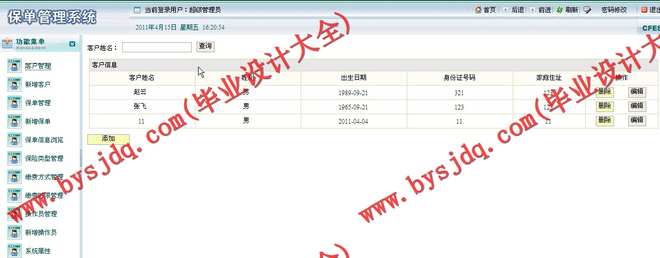汽车保险业务系统的开发目的是使汽车保险业务的管理模式从手工记录转变成信息管理,为管理人员提供方便条件。对汽车保险业务的实际情况进行调研之后,进行详细的需求分析,对现有的管理模式进行改进,开发出一套新型的管理系统,从中领悟系统开发的思想,掌握系统开发的流程和方法。