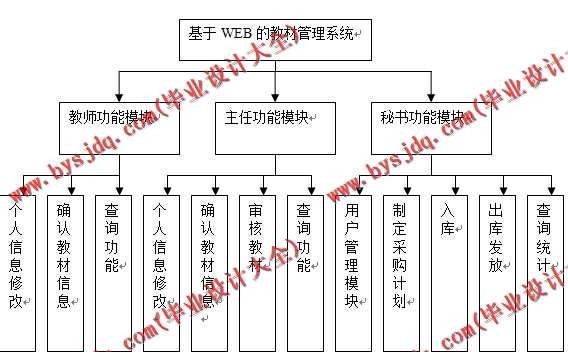 教材管理:任课教师提交教材的信息(年级、计划课程 教材名称、出版社、作者、单价、出版号);教研室主任审核;审核通过的教材由教学秘书确定订购数量并下订购单;将购买的教材入库;记录教材的发放情况;