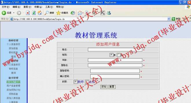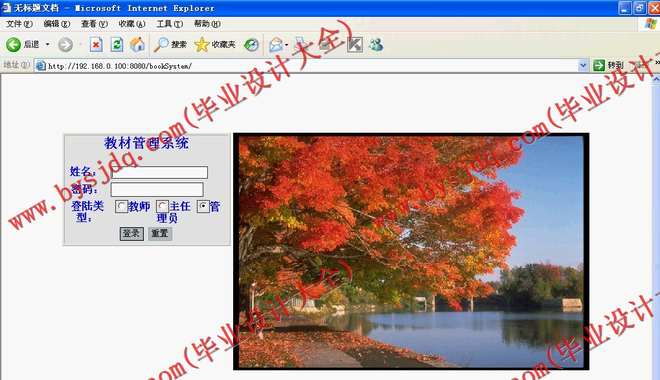 学校的教材进行管理,JSP+SQLSERVER 2000数据库可以制作动态网页用于学校的用户、教材管理。