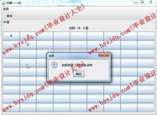 5.1记录游戏开始的时间,在WM_TIME消息响应函数OnTimer中获得当前时间,减去游戏开始时的时间,在显示时间的客户区域显示得到的时间差(用数字位图),当游戏结束时(排完全部雷或被炸死)关闭定时器,停止显示。