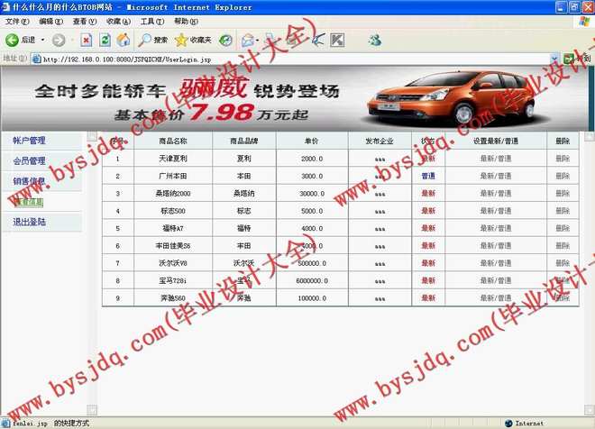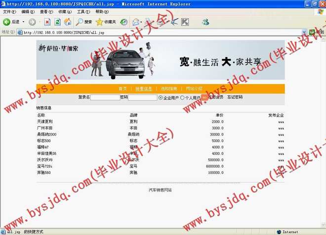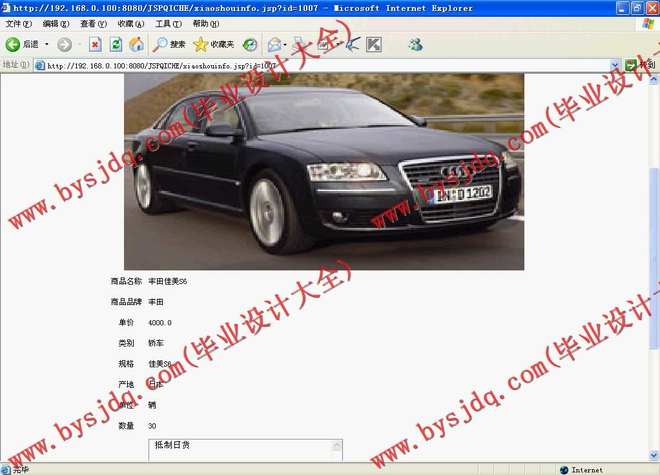 本系统的设计目的是为了满足消费者只要通过互联网就可以足不出户的购买自己喜欢的汽车,改变传统商业交易,在互联网上进行交易,实现网上购买汽车。为了实现上述目的,我对网上汽车管理系统有了深一步的了解,从而满足客户的要求,让他们可以随时找到自己想要购买的汽车。