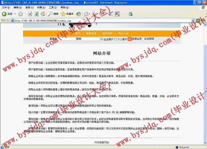 用户通过在线注册成为网站的用户,可以获得以下功能:汽车型号浏览,购买汽车,查看订单,修改订单,修改密码,修改个人信息,汽车简介,投票箱等。另外,用户注册成功后,可以进入到网站的留言板块进行留言等。