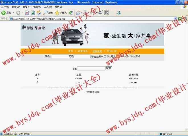首先对现有系统进行分析,现有系统是信息的重要来源。分析已有系统的功能和实现,从而确定新系统的设计目标和模型。由于条件有限,调研主要是在网上进行。即通过在网上已有的汽车网站注册成会员来了解其具备的功能。