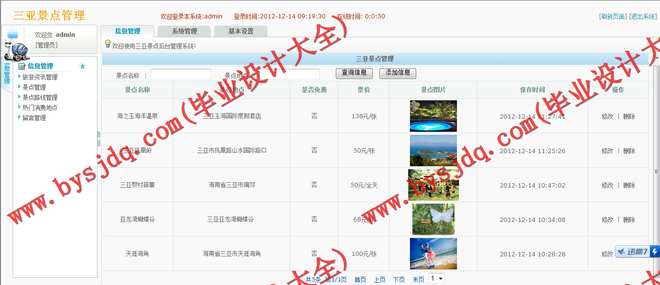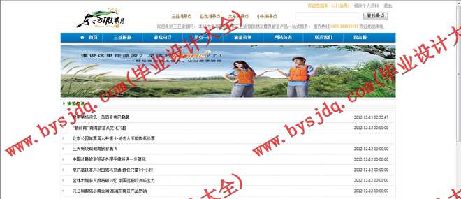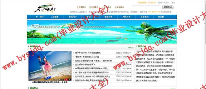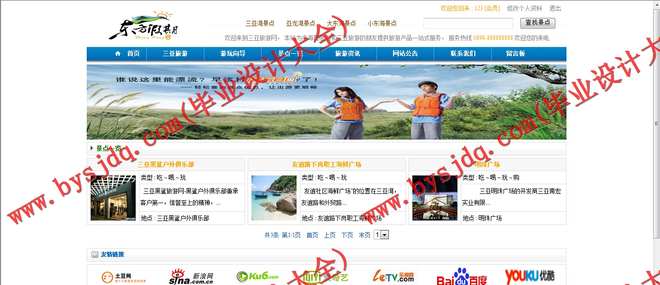 本系统是一个旅游信息发布及景点宣传网站,可以为各类用户提供方便的在线浏览旅游资讯,通过旅游资讯结交好友,再通过本系统的留言板模块与好友进行互动;管理员可以通过用户管理、景点管理、景点线路管理、热门景点管理、友情链接管理等管理功能来对系统进行维护更新。