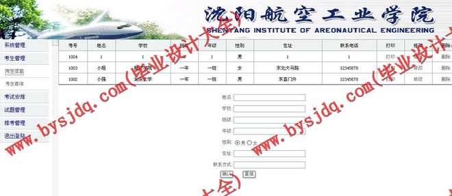 1) 考生基本信息管理:管理员可以对考生信息进行添加、修改、删除、模糊查询;