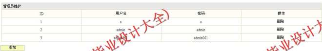 (5) 系统管理主要是对管理员进行管理,实现密码的修改,其他管理员的添加、删除。