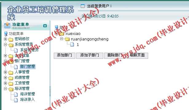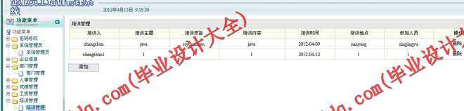 (3) 培训管理操作主要是对企业部门中的刚录入的员工和正式员工进行培训管理,可以实现对培训的记录、删除、查看和详细的培训计划进行查询。
