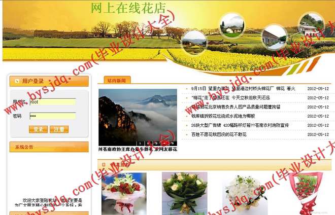 本程序主要实现鲜花的在线销售功能,包括商品的发布,销售;用户注册,商品购买等等,实现用户方便快捷的网上购物,从而拓宽花店的业务范围,具有很大的实际价值。
