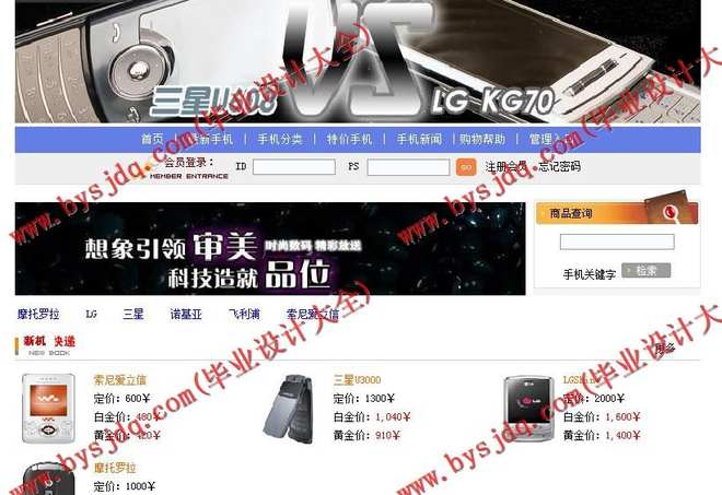 8.手机型号查询:成功登陆的用户可以在该页查找自己需要的手机。如果用户还没有注册就直接进入或者没有成功登陆就进入页面,将被连接到“用户登陆页面”。