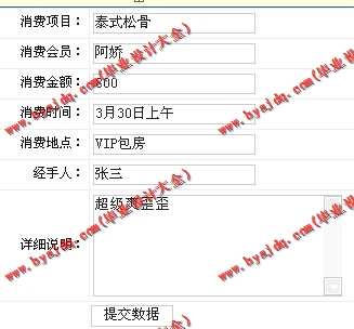 (2)会员消费管理模块:消费信息添加,消费信息修改,消费信息删除,消费信息浏览。