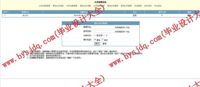(1)会员档案管理模块:会员档案添加,会员档案修改,会员档案删除。