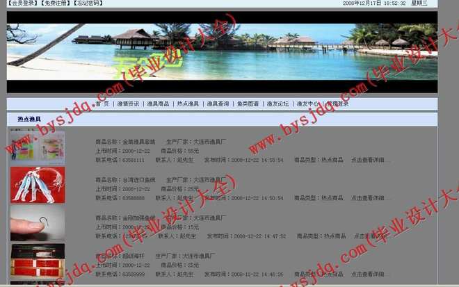 8.渔具商品查询:成功登陆的用户可以在该页查找自己需要的渔具商品。如果用户还没有注册就直接进入或者没有成功登陆就进入页面,将被连接到“用户登陆页面”。