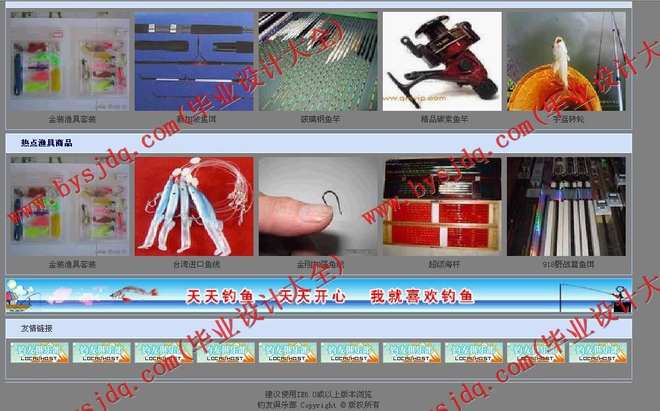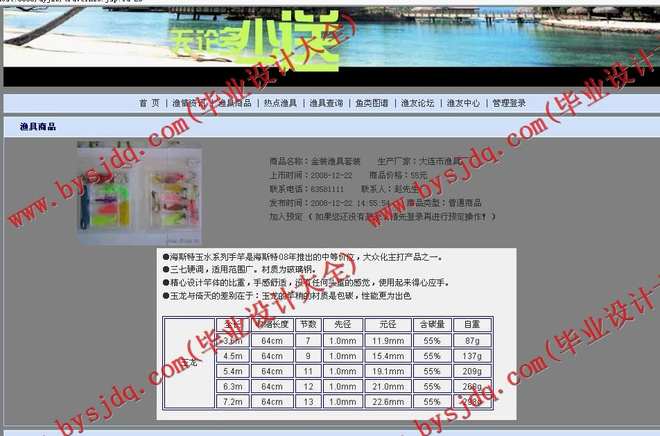 5.订购渔具商品:成功登陆的用户可以在该页面定购所需要的渔具商品。如果用户还没有注册就直接进入或者没有成功登陆就进入页面,将被连接到“用户登陆页面”。