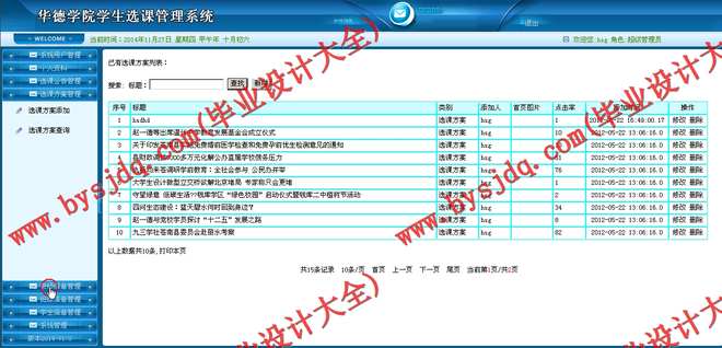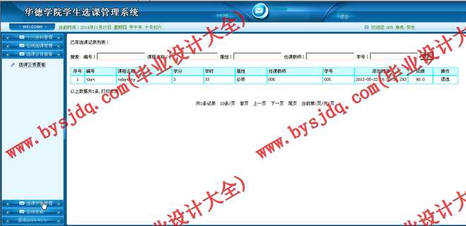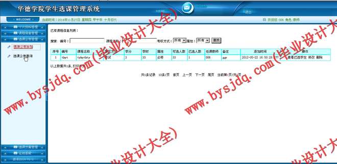 开设课程:教师用户登录系统后,可以开设课程,可以设置该课程为必修课程或则选修课程,可以设置该课程的最大人数。教师还可以为该课程设置一个前导课程,若学生没有学习或则选择前导课程则不能选择该课程。