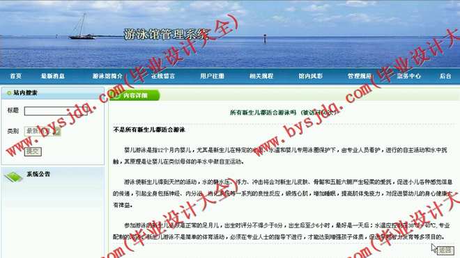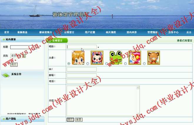 毕业设计拟开发一个基于J2EE的游泳馆管理系统。系统主要具备的功能包括: