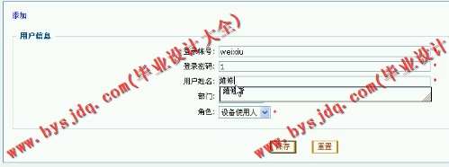 设备管理系统采用B/S结构、结合网络数据库开发技术来设计本系统。开发语言采用JSP,数据库使用Mysql数据库。完成以下基本功能: