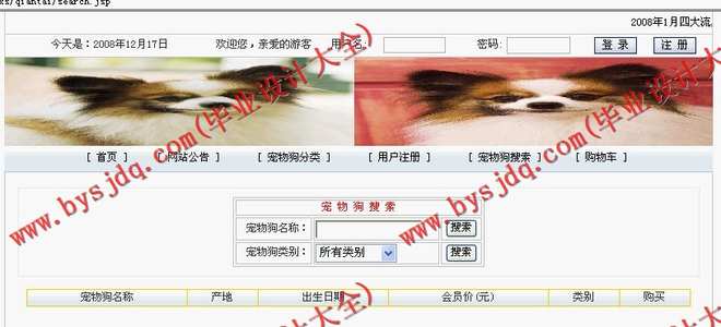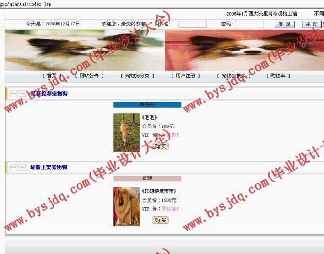 首先对现有系统进行分析,现有系统是信息的重要来源。分析已有系统的功能和实现,从而确定新系统的设计目标和模型。由于条件有限,调研主要是在网上进行。即通过在网上已有的宠物狗销售系统注册成会员来了解其具备的功能。