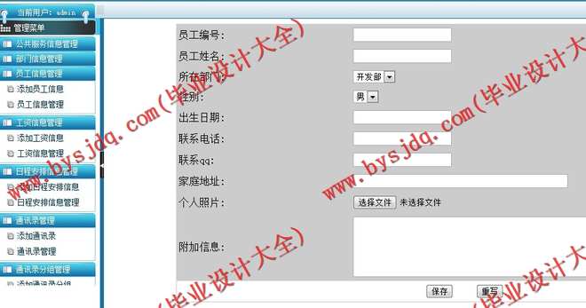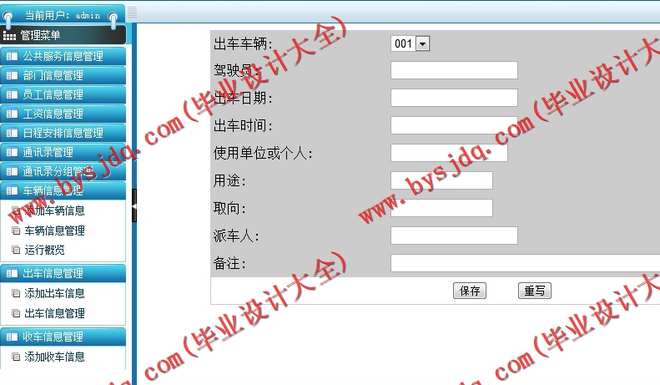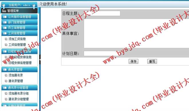 信息录入是对系统中所有涉及到的可供用户查询的信息进行前期的录入和后期的陆续补录,同样是需要系统管理员来操作实现。