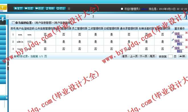 这一功能主要由系统管理员来实现。主要包含四个子功能:用户管理、权限管理、信息录入和系统维护。