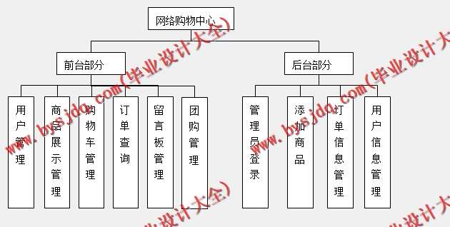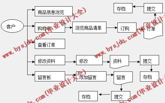 前台模块主要为登陆网站的用户提供商品和服务的信息,填写并提交订单的服务。这样,将前台模块再细分为用户管理模块、购物车模块、订单管理模块、留言板模块等。顾名思义,这些模块的名称基本概括了它们的功能。下面详细说明一下这些功能模块的设计: