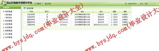2、供应商管理模块:该模块管理了供应商的信息,对供应商能增加,删除,修改。