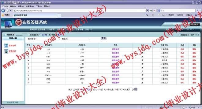 (9)问题讨论:管理本系统中学生与老师的问题讨论。