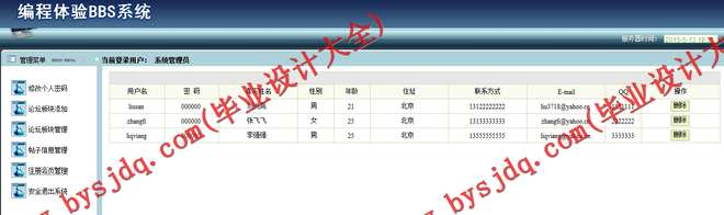 a、具有用户信息管理功能,实现了对所有注册用户信息的管理操作,可以查看或删除注册用户信息。