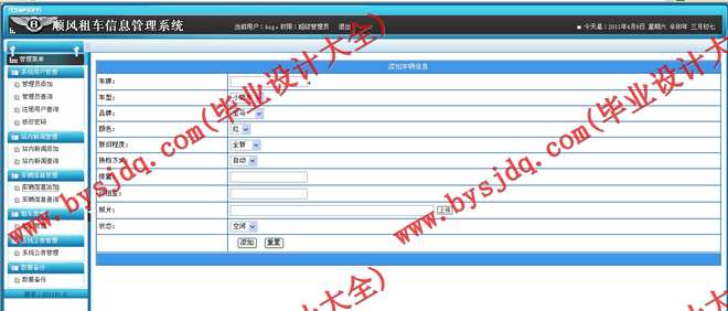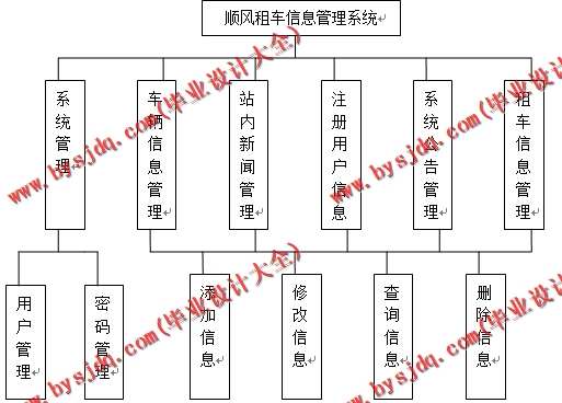 管理信息系统是进行信息的采集、存储、加工、维护和使用的系统。它是随着管理科学和技术科学的发展而形成的,顺风租车信息管理系统就是管理信息系统,它要求实现系统用户管理、站内新闻管理、车辆信息管理、租车管理、系统公告管理、数据备份管理等几大功能。具体功能如下: