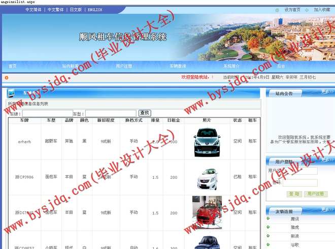 租车管理:系统提供全部的车辆档案、注册用户档案,可以记录注册用户租车的所有细节信息。同时可以删除和修改。