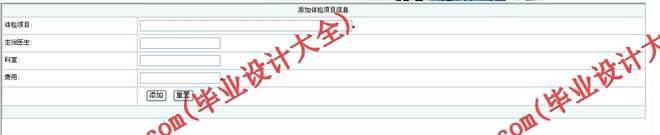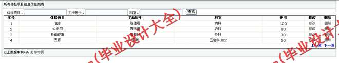 3)体检项目信息,包括数据项:体检项目,主治医生,科室,费用等。