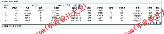 4)体检记录信息,包括数据项:体检项目,主治医生,科室,费用等。
