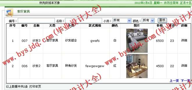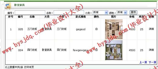 4)家具类别,包括数据项:分类编号,分类名称,添加时间等。