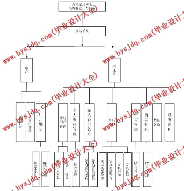 通过系统功能分析,针对一般的万象家具网上商城,总结出如下的需求信息: