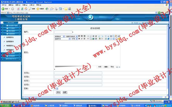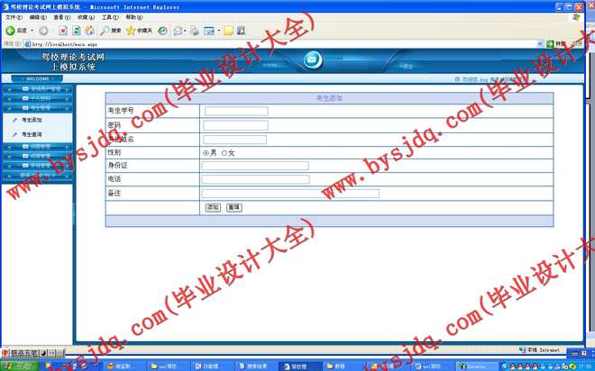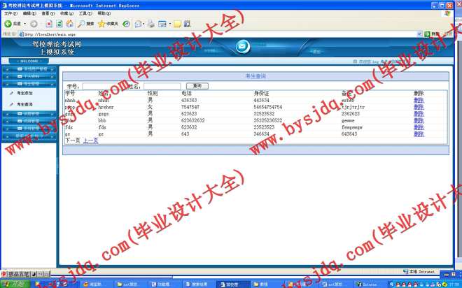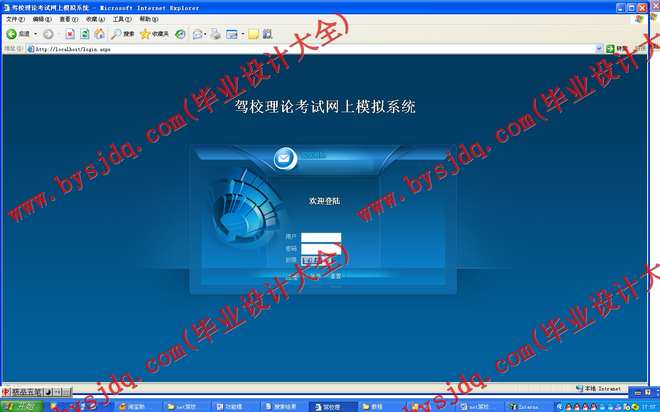 网上驾校管理管理平台采用B/S模式开发,采取网站的形式,这样就省却在每一台电脑上都装客户端的麻烦以及考虑到后期维护的方便性,只需要在一台主机上装有系统,别的电脑只需联网到这台主机就可以在IE里打开系统,很方便。