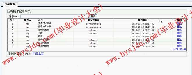 文档查询:实现通过审批的所有打印文档信息。