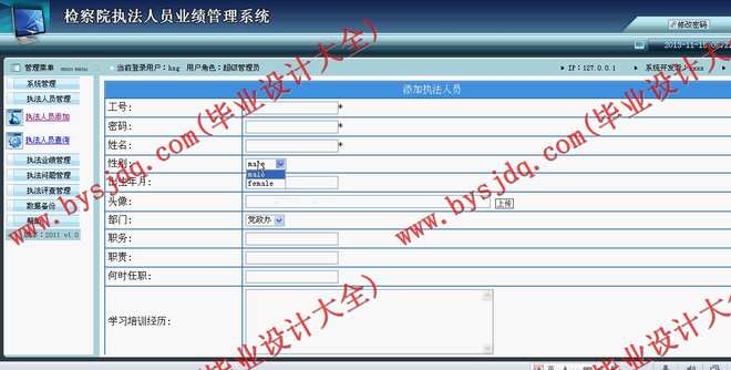 1、执法人员基本情况登记表(姓名、性别、出生年月、添加头像、工作部门、职务、岗位职责、何时任职、学习培训经历等)