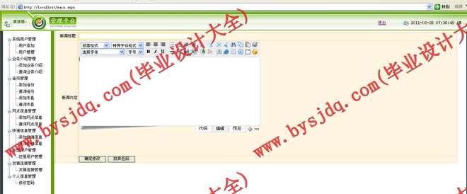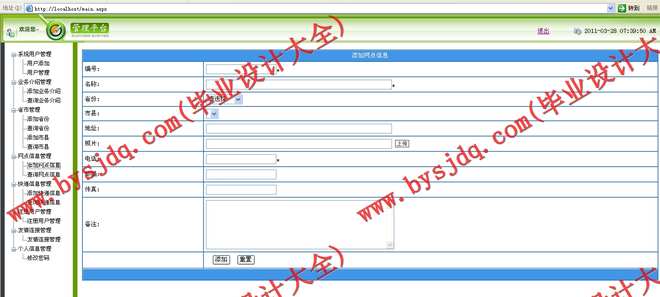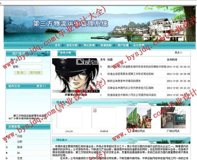 2)管理员用户登陆后可进行业务介绍信息、省市信息管理及网点信息等的维护,以且网点信息、快递信息的维护;