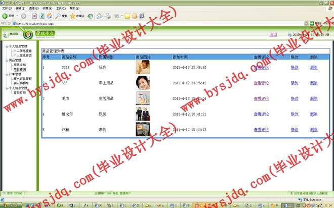 4)商品类别,包括数据项:分类编号,分类名称,添加时间等。