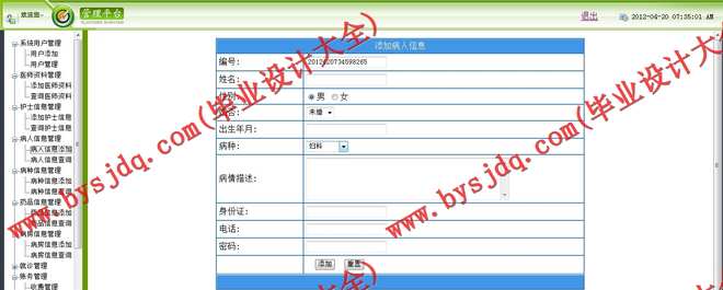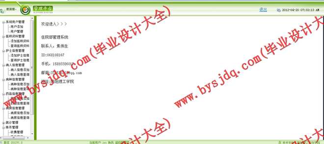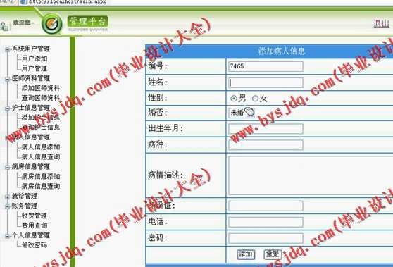 N047基于ASP.NET的中心医院住院管理系统的设计与实现
