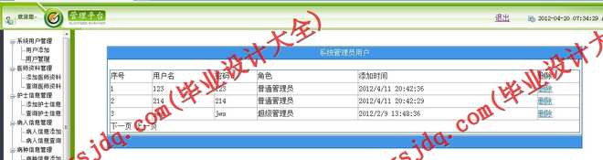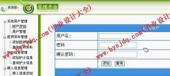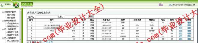 医护人员管理功能:实现医护资料的新增、修改、查询。医师信息、护士人员的信息管理只能是普通管理员以上的用户才能进行。