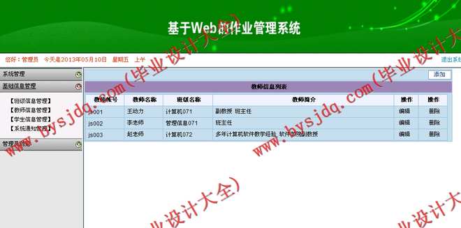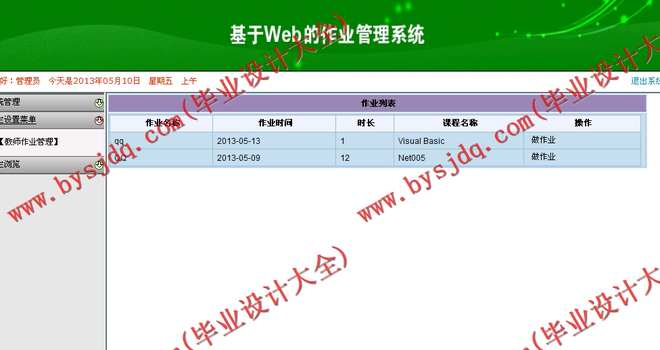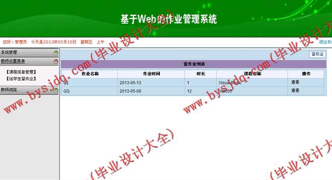 随着互联网的发展,互联网已经逐渐应用到各行各业当中,高校也是互联网高速发展的有力证明,如今高校中的大部分工作都是在互联网和局域网中完成,如招生、日常工作等,本系统—WEB作业管理系统也是这个应用中最典型的例子,他主要是解决教师、学生之间日常作业安排,作业查看等内容。