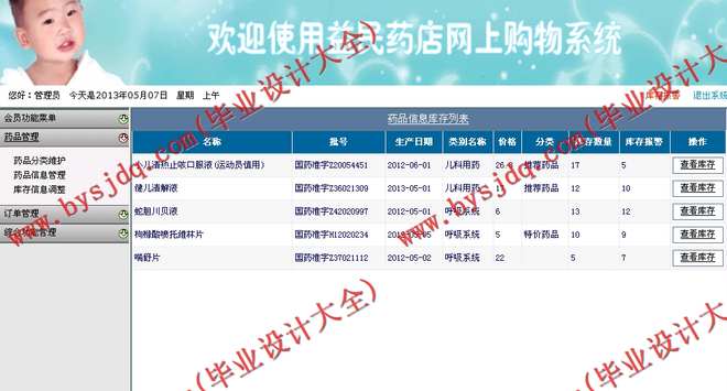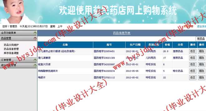 前台部分就是用户浏览、选择药品信息的地方,需根据所需销售药品特点安排布局,药品数据灵活根据需要从数据库挑出,照顾用户浏览习惯,简化流程,使顾客能迅速找到所需药品,真正做到“简洁高效流畅”的环境。