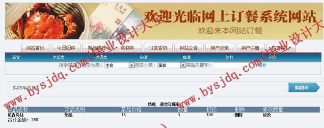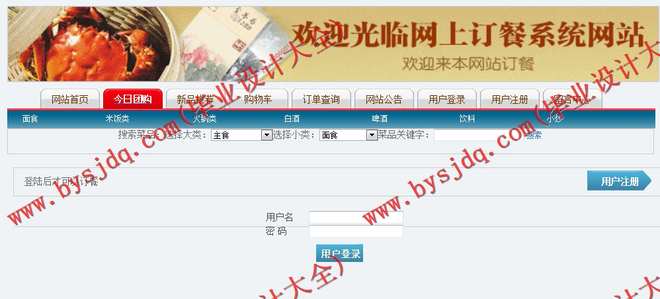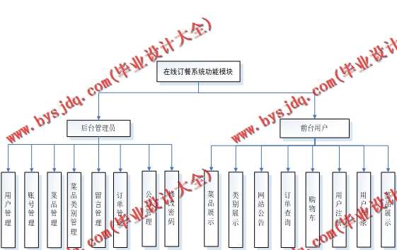 本系统包括2个大的功能模块,前台模块:前台主要包括用户登录,用户注册,菜品浏览,预定菜品,订单查询,公告查看,精品推荐,热门点击等信息模块。后台模块包括:会员管理,账号管理,菜品管理,菜品类别管理,留言管理,订单管理,公告管理,修改登录密码等功能模块。